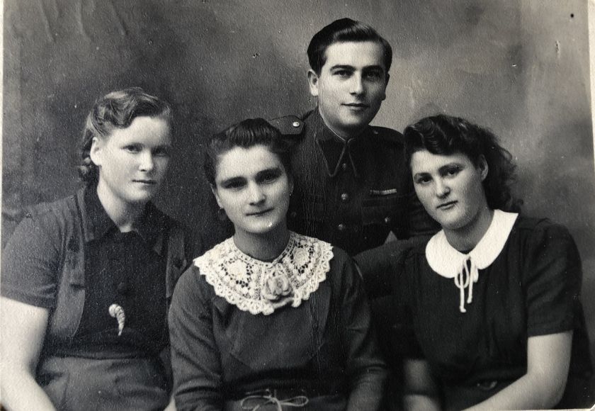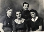 zleva : Libuše Gabrielová - Šulcová, Stáza Rajmová, neznámý, Emilie Gabrielová - Olivová (sestry Libuše a Emilie)