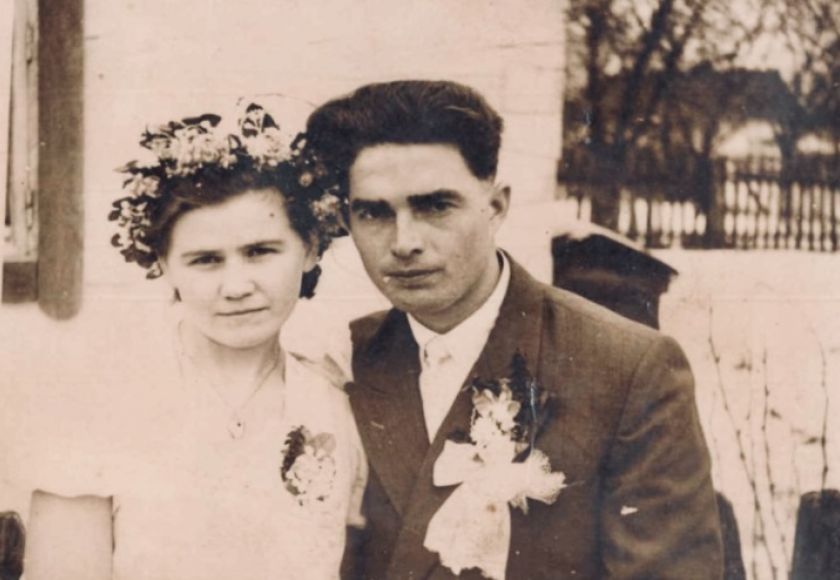 Nevěsta Evženie Vlačihová, ženich Vladimír Černý, u nevěsty rodiče – máma Marie Vlačihová, roz. Barcalová a táta Josef Vlačiha, nad nevěstou její bratr Boris Vlačiha.
