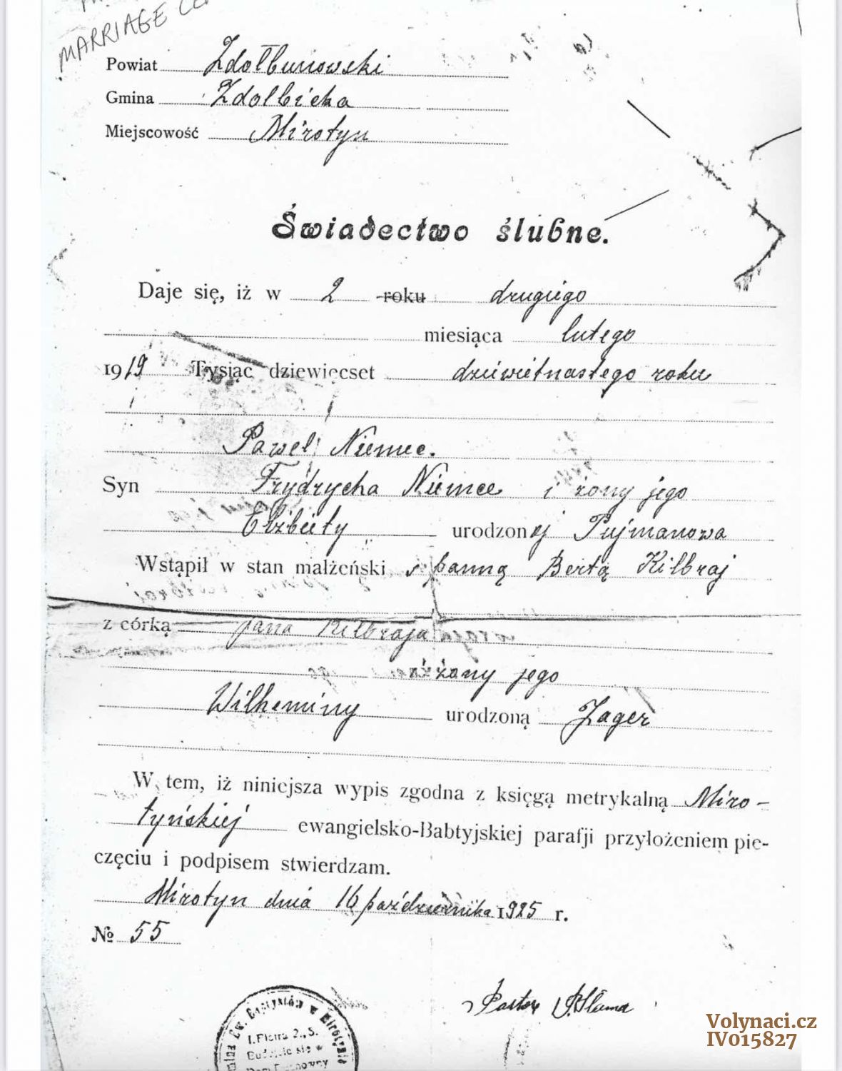 Svatba byla 2. února 1919.