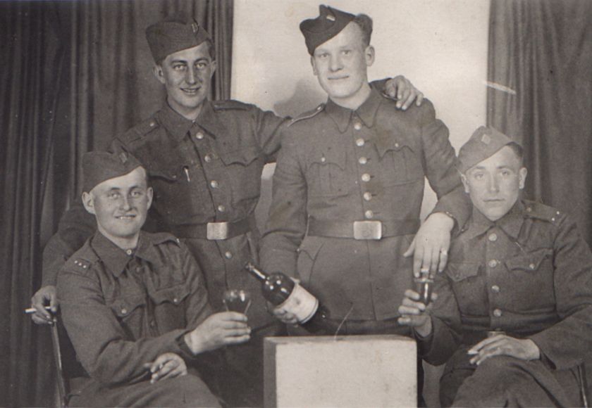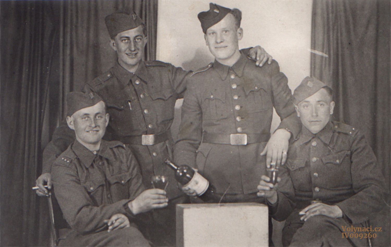 zleva Josef Cinert, Slavomil Ruta, Josef Kotyza, neznámý (snímek byl pořízen roku 1945 v Košicích)