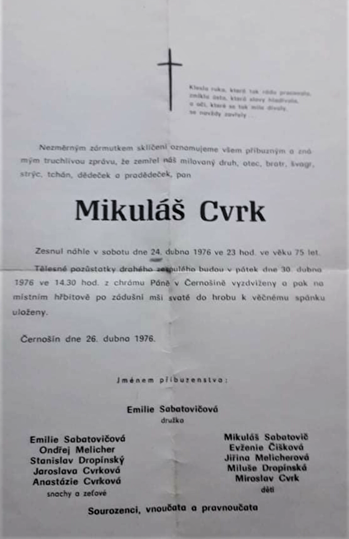 | Úmrtí | † 24. 4. 1976, Kladruby, hřbitov Černošín |