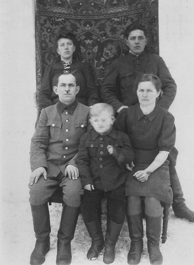 Alexandr Čmil s manželkou Annou a společným synem Rostislavem, v druhé řadě Anniny děti z prvního manželství - Marie a jeden ze synů Glajchů (datum odhadem)