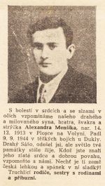 Nekrolog Alexandra Menšíka z Plosky na Volyni