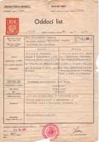oddací list Vladimíra Mikeše a Slávky Janouškové z roku 1947 - čekali se svatbou až do Čech
