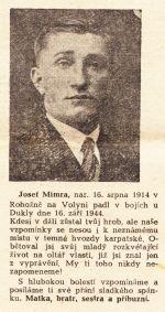 Nekrolog Josefa Mimra z Rohozna na Volyni