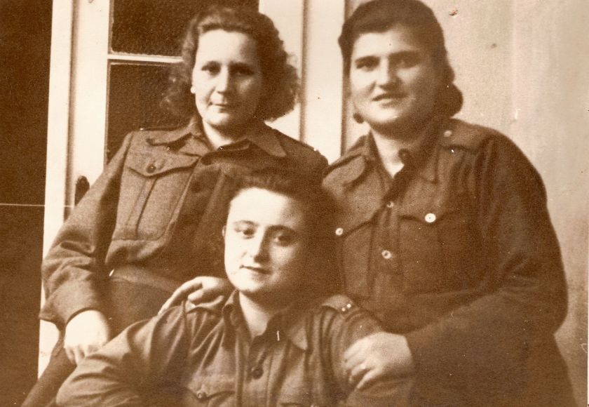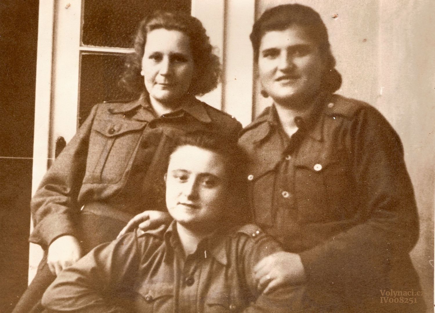 Spojařky armádního sboru, 2.7.1945. Františka Kašparová-Richterová, Volyňská Češka, Marie Valoušková-Matějková, Volyňská Češka, Milena Andršová-Danišová