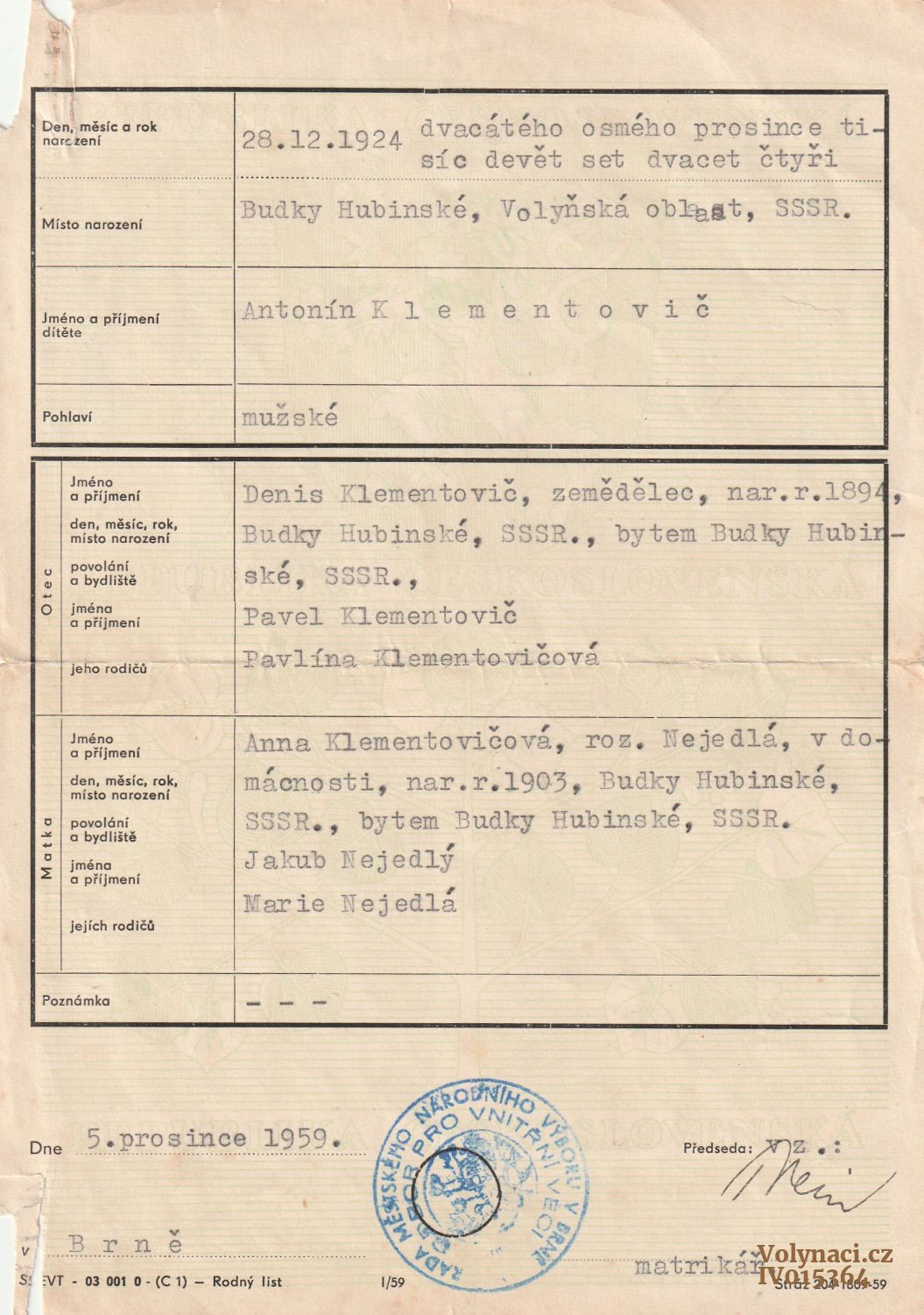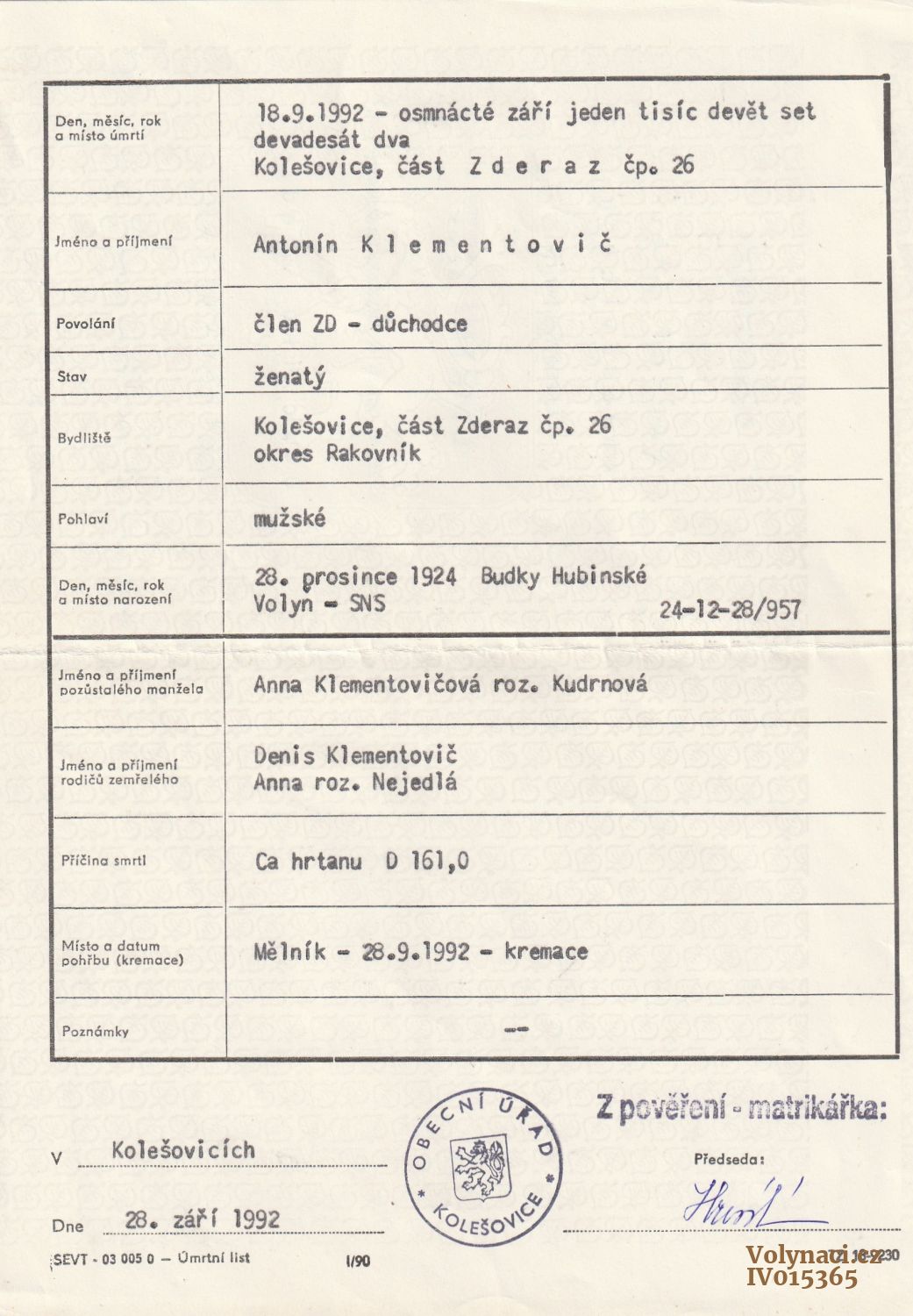 Manželka: Kudrnová Anna, Josef, Klementovičová