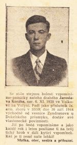 Nekrolog Jaroslava Korába z Českého Volkova na Volyni.