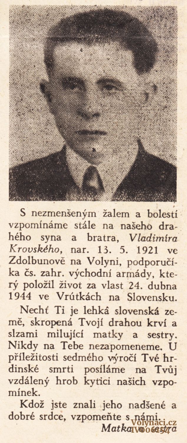 | Úmrtí | † 24. 4. 1945, Slovensko, Vrútky, brigádní obvaziště, zemřel po zranění, pohřben Vrútky, 1.čs.samostatná brigáda v SSSR, 3. pěší prapor |