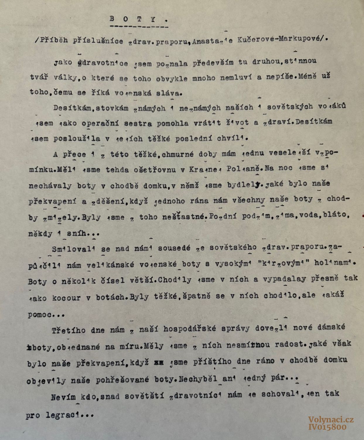 Anastázie Kučerová-Markupová z Novin na Volyni, zdravotní sestra 1. čs. Brigády