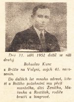 V roce 1952 Bohuslav Kunc oslavil své 41.narozeniny