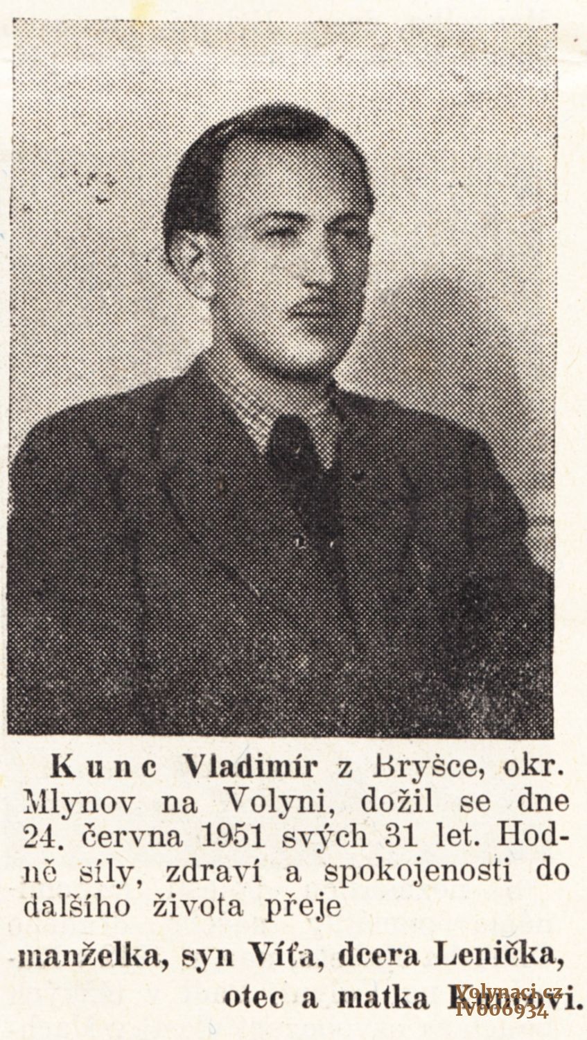 Vladimír Kunc v roce 1951 oslavil 31 let