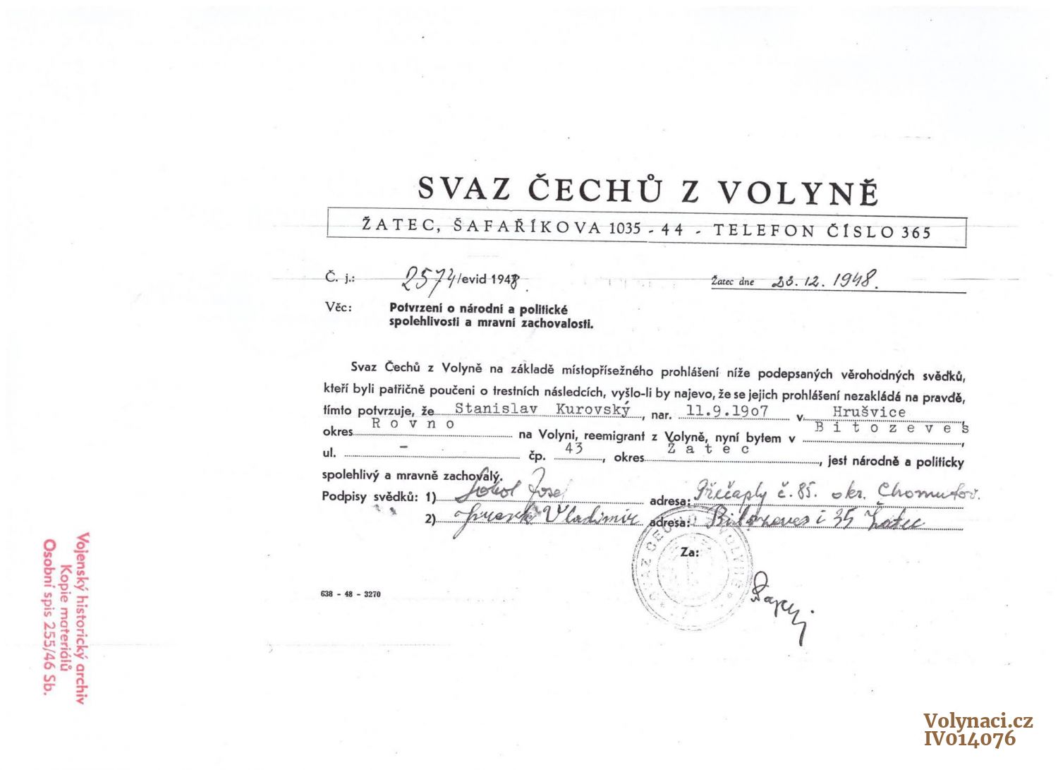 | Místo repatriace | Bitozeves, Československo (repatriace) | |