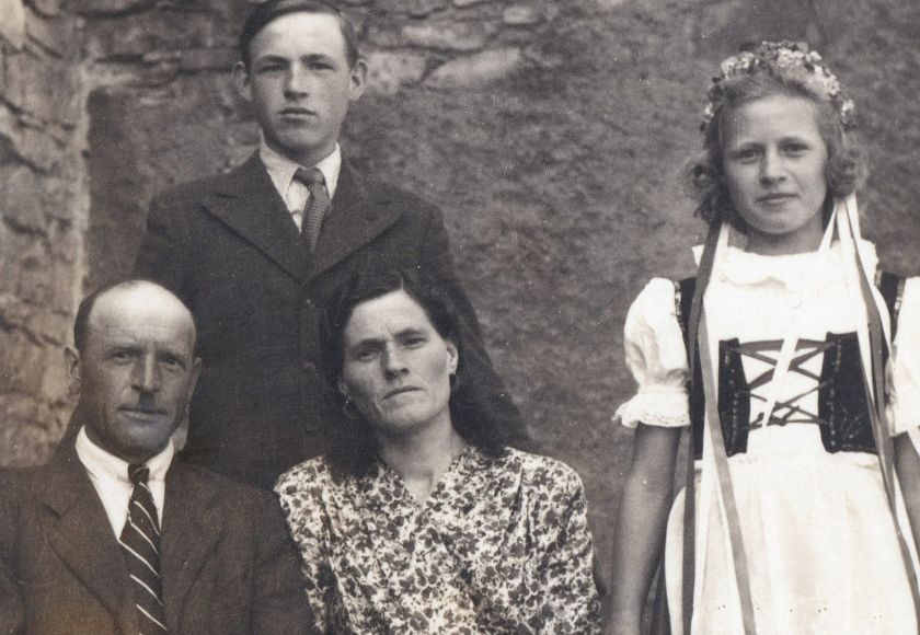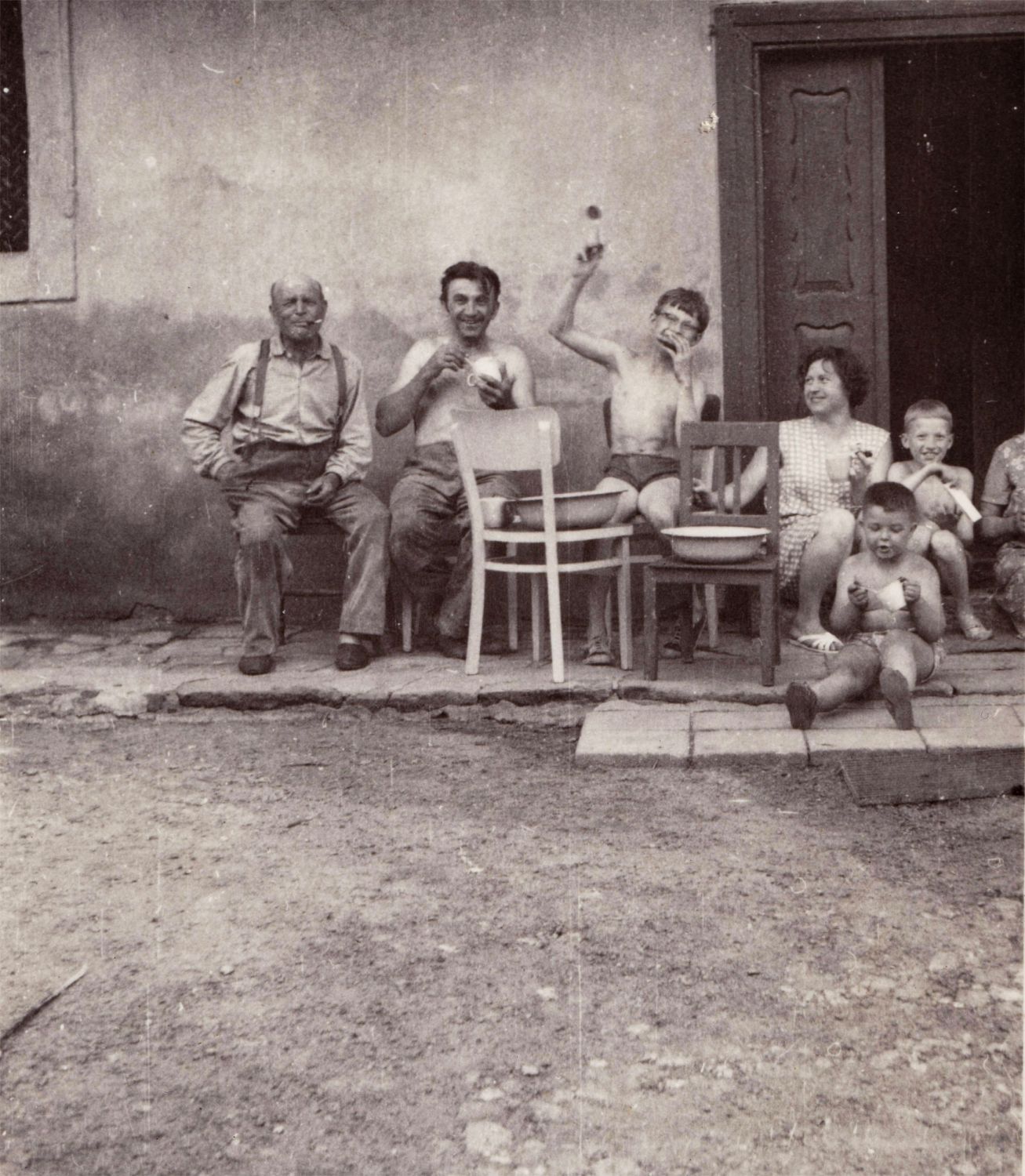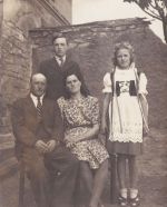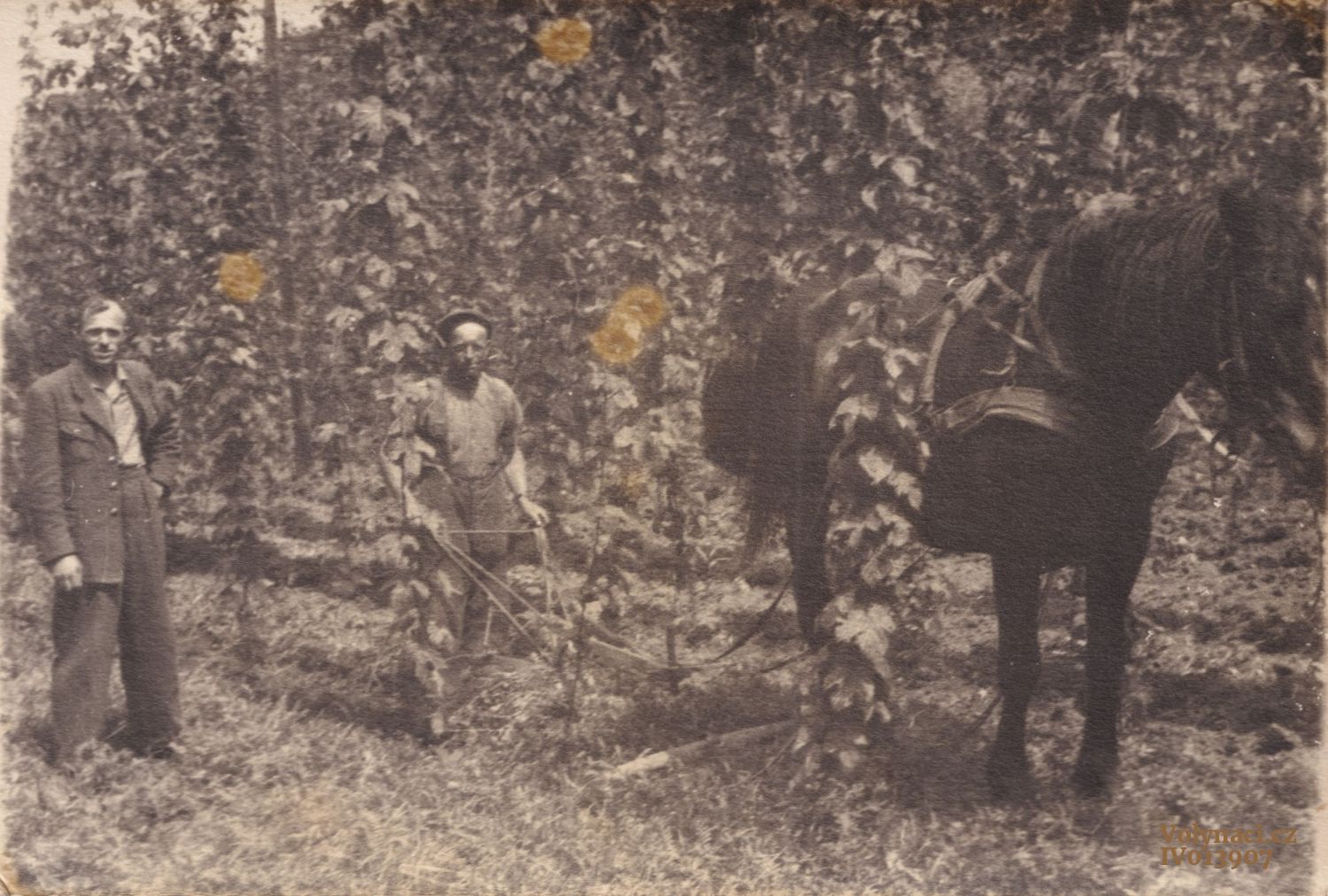 Svatba Josefa Vostrého a Marie Levické - obřad proběhl v katolickém kostele v Lenešicích a oslava u Levických v Břvanech, vedle nevěsty stojí její bratr Josef