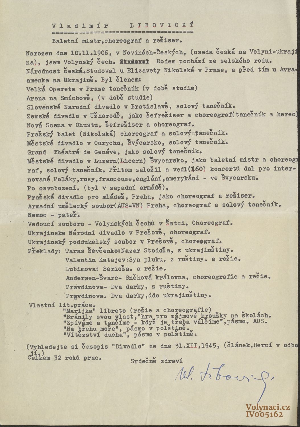 Baletní mistr Vladimír Libovický účinkoval na slavnostní akademii v Žatci v rámci "SLIBU VĚRNOSTI REPUBLICE" dne 12.července 1947