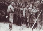 zleva Antonín Špatenka ml., Antonín Linha ml., v klobouku jeho otec Josef Linha, Václav Valášek, vzadu v lodičce Václav Maršík, Antonín Linha starší (strýc a kmotr Antonína Linhy ml.), Josef Knop a vpravo Konstantin Vintera.