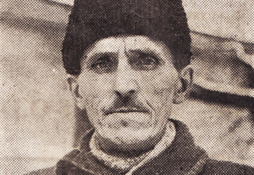 zleva Antonín Špatenka ml., Antonín Linha ml., v klobouku jeho otec Josef Linha, Václav Valášek, vzadu v lodičce Václav Maršík, Antonín Linha starší (strýc a kmotr Antonína Linhy ml.), Josef Knop a vpravo Konstantin Vintera.