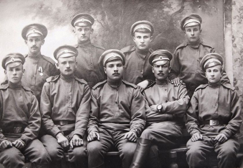 Stojící zleva: 1. Václav Klich (datum nar. ani místo není známé), v legiích od 29. srpna 1914 do 5. října 1914, zemřel na tyfus; 2. neznámý; 3. Otakar Klich (nar. 1896 v Olšance na Volyni), v legiích od 27. srpna 1914 do 1. března 1918; 4. Václav Čížek (nar. 1895 v Kvasilově na Volyni), v legiích od 27. srpna 1914 do 14. března 1918