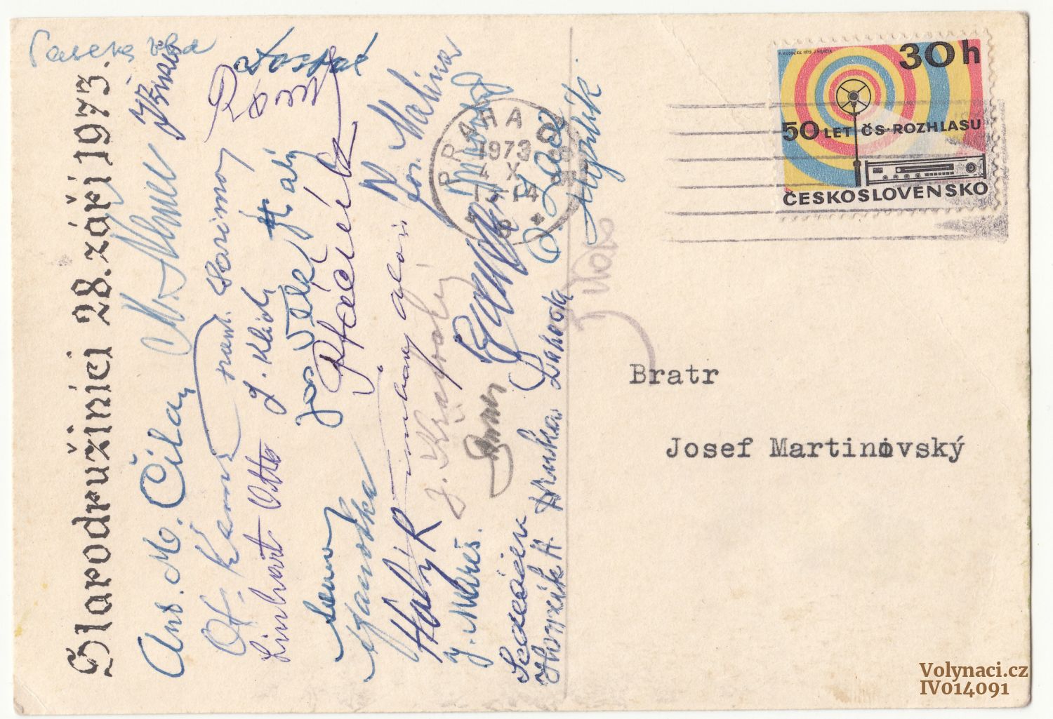 pohlednice s podpisy ze setkání Starodružiníků v roce 1973