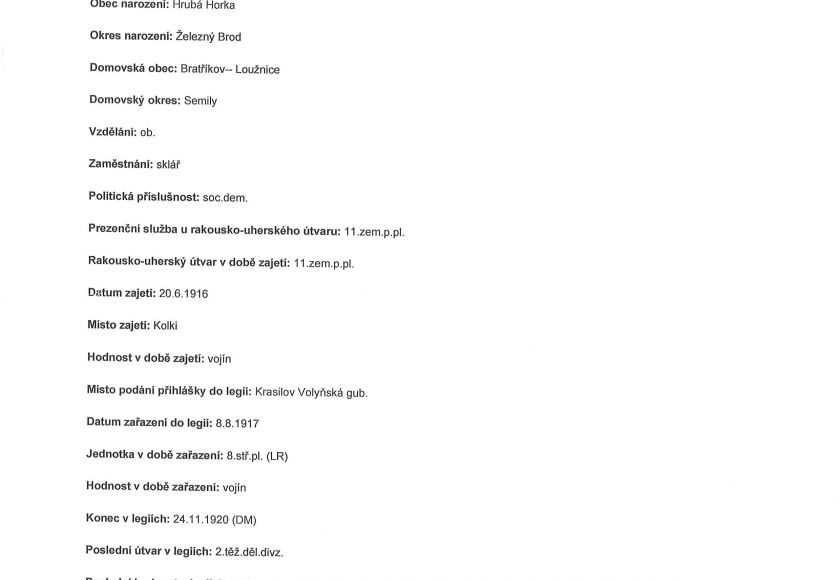 | Datum zařazení do jiné (další) legie | 09. 08. 1917 | |