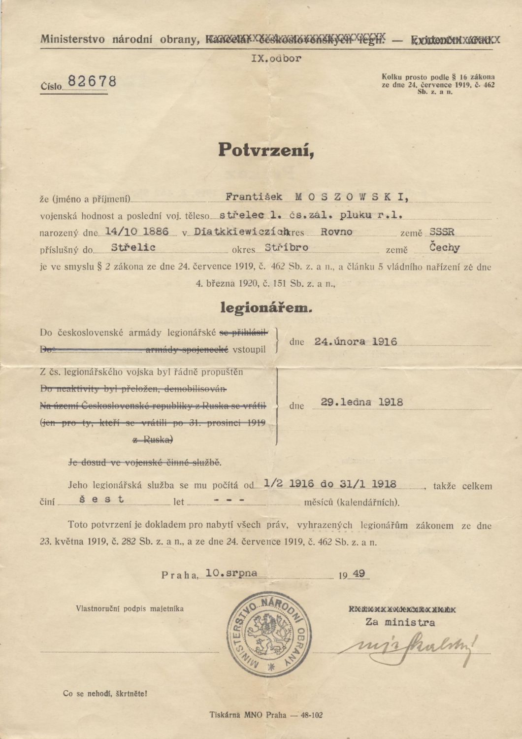 | Datum zařazení do jiné (další) legie | 24. 02. 1916 | |