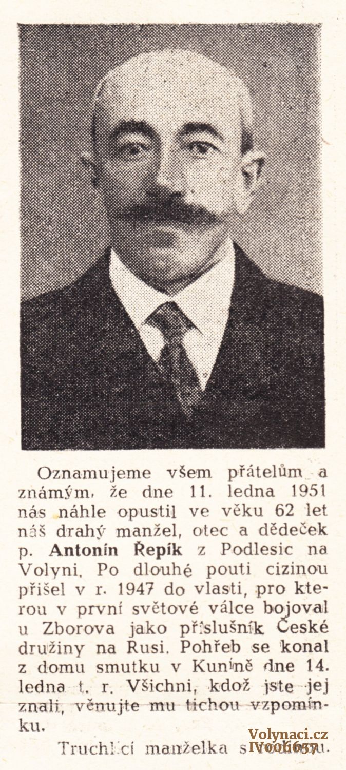 Antonín Řepík z Podlesic na Volyni