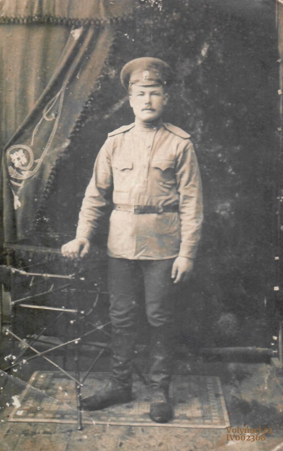 vojín Václav Širc z Malované u Dubna, ruská uniforma, v období 1.světové války, foceno ca 1914?