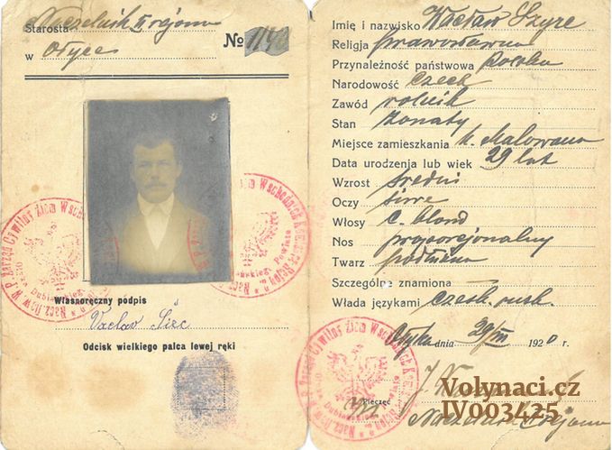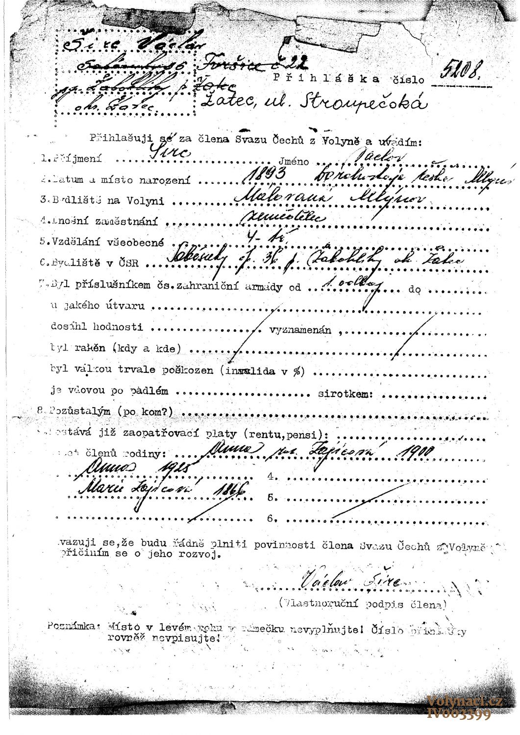 Václav Širc - Přihláška do Svazu Čechů z Volyně