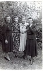 1947 Dlouhé Pole Janouskovi, Sajlerovi, Roušarovi před odjezdem do Čech, Rok: 1947, Zdroj: Archiv rodiny Mikešových, Inventární číslo: IV003926