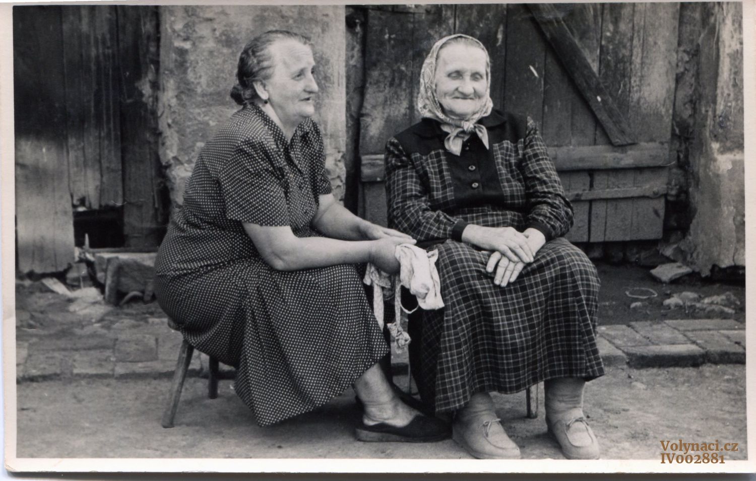 Nedbálková Emílie a Horáková Anna (v tmavém), sestry Černé v Údlicích asi 1960