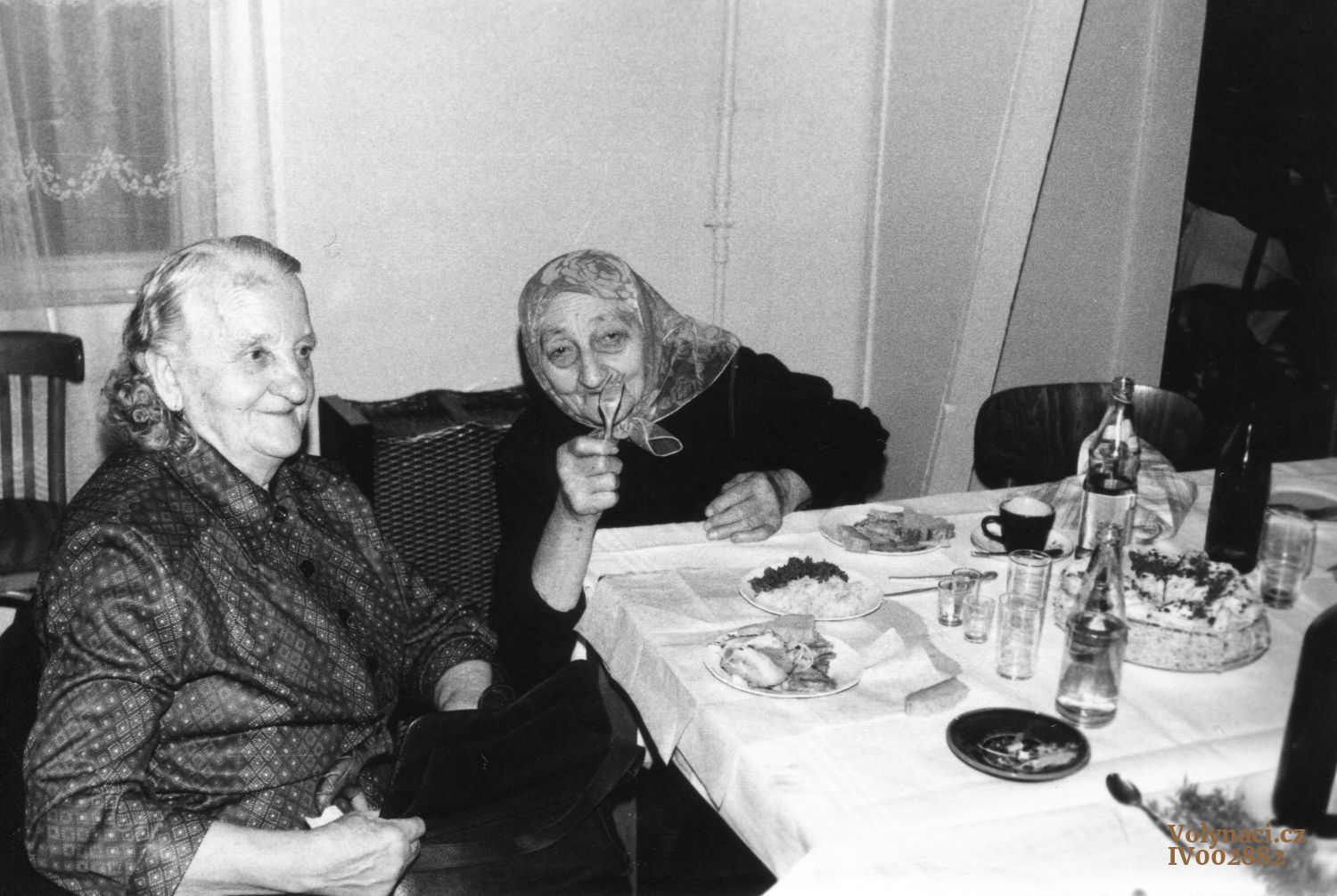 Nedbálková Emílie a Horáková Anna (v tmavém), sestry Černé v Údlicích asi 1960