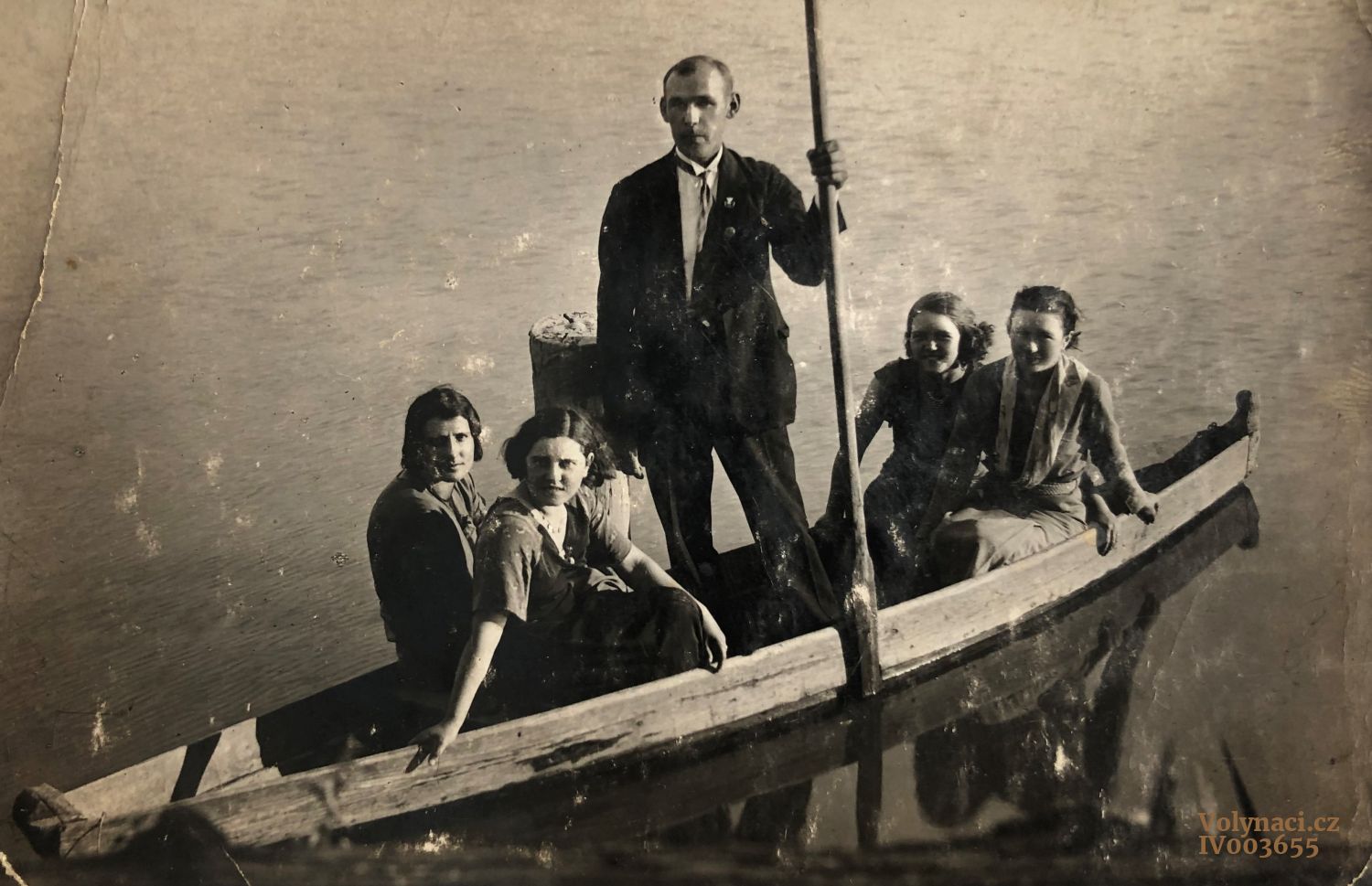 Miroslav Regentík (1908) na loďce s děvčaty.