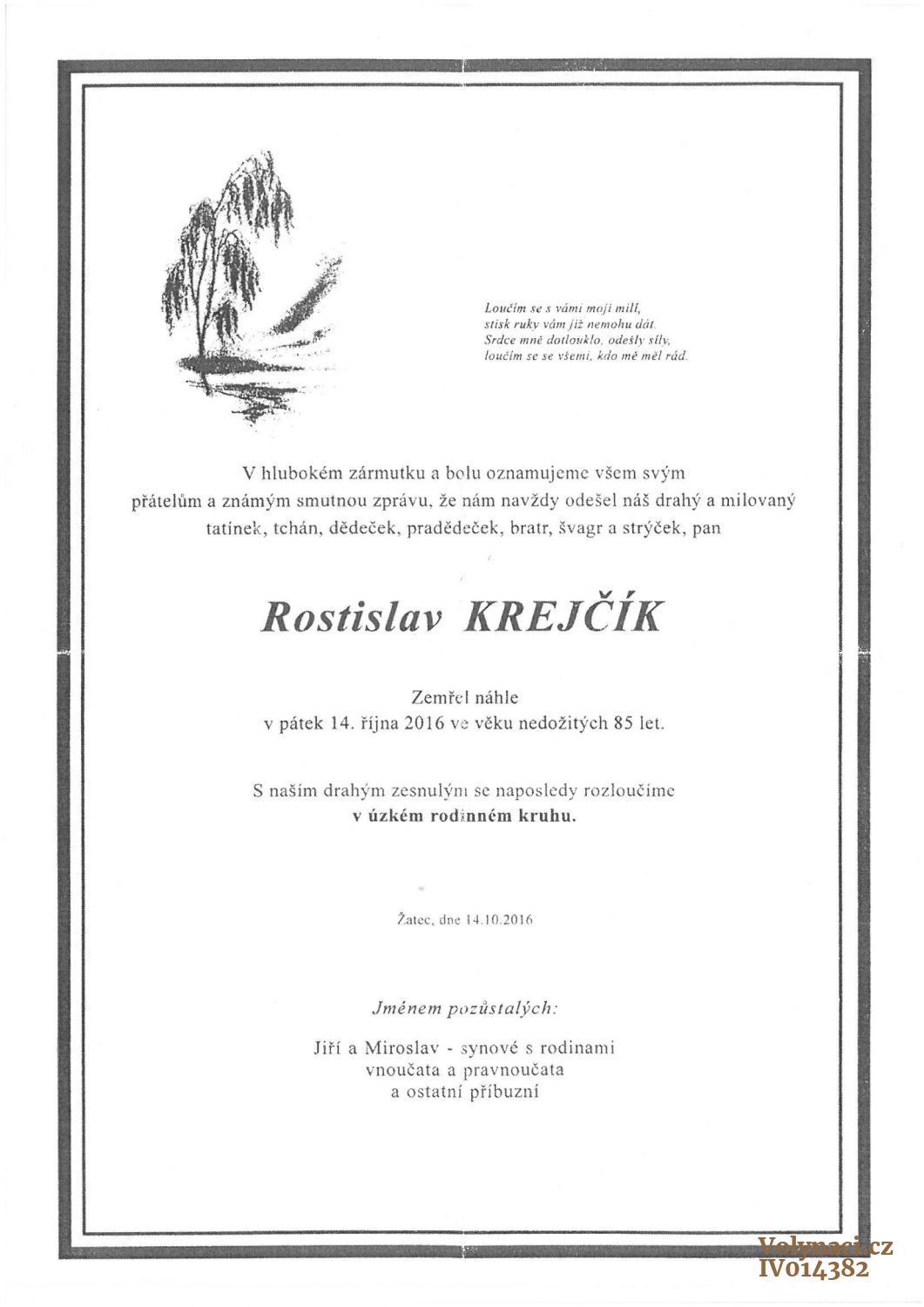 parte Rostislava Krejčíka, Rok: 2016, Zdroj: archiv Jaroslava Semeňáková, Inventární číslo: IV014382