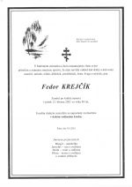 parte Fedora Krejčíka, Rok: 2021, Zdroj: archiv Jaroslava Semeňáková, Inventární číslo: IV014381