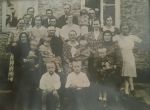 Velké rodinné foto rodiny Vaněk z Hrušvice/Hrabina. V okne s dcerou Vaněk Václav, Jan (1911-1982), dcera Emílka (1934) a vedle manželka Libuše roz. Malá