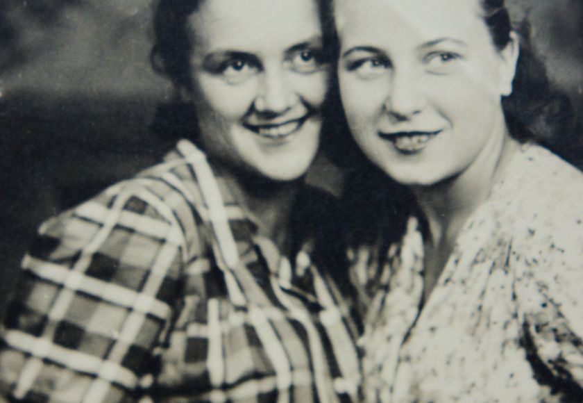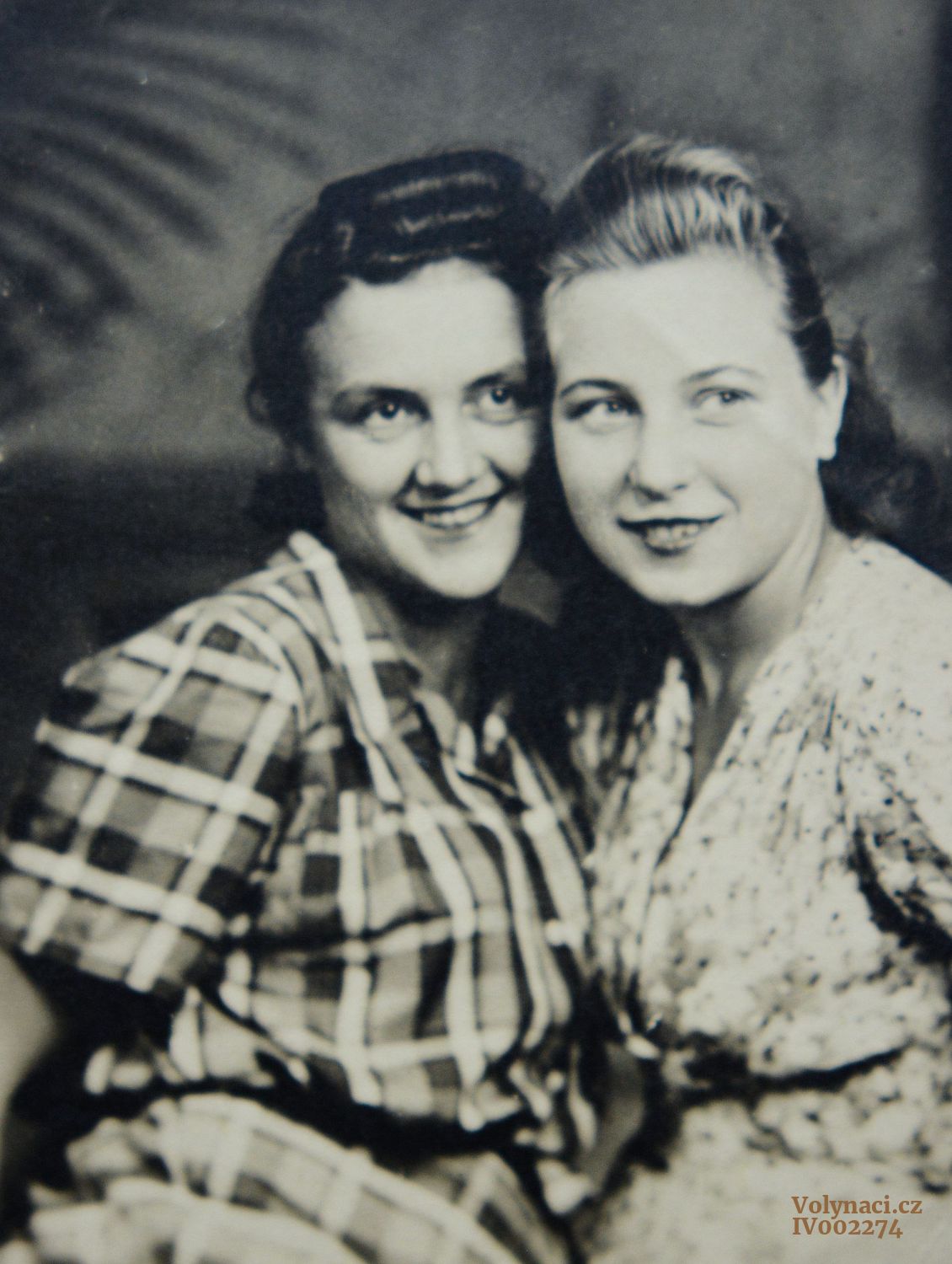 Evženie Linhartová (v kostkatém) s kamarádkou