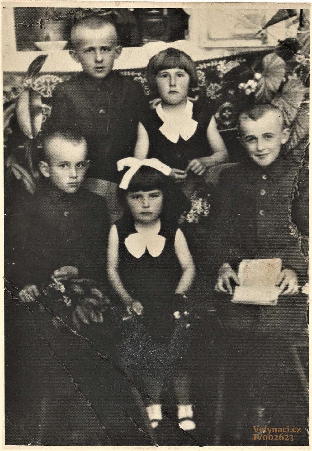 Sourozenci Stryjovi - vpravo Václav (1926), nahoře Marie (1931)a pod ní Vlasta (1933), vlevo nahoře Jaroslav a dole Emanuel. Rok odhadem