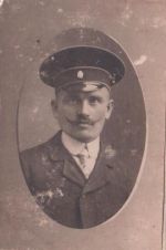 Novotný Josef, Jan *1886 +1962 v drážní uniformě jako strojvůdce lokomotivy. Letopočet odhadem