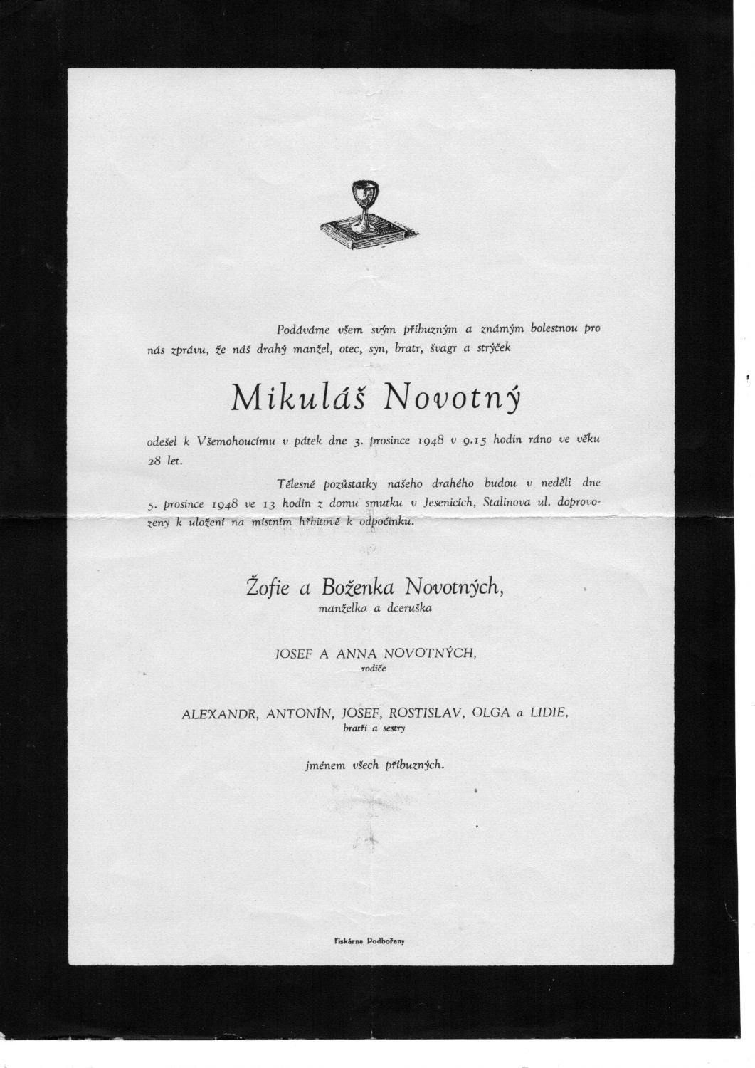 syn Josefa Novotného 1886 - 1962 a Anny Novotné, roz. Mavlerové 1888 - 1949 Manželka Žofie Novotná, roz. Svobodová, dcera Božena Černová roz. Novotná