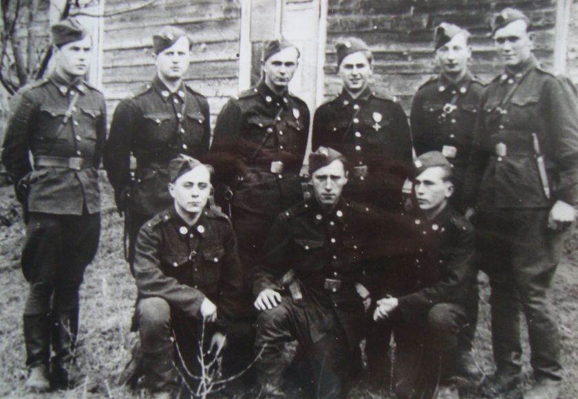 Skupina poddůstojníků z tankového praporu, Klečící zleva: Carboch, Pražák, Posner, Stojící: Ostašov, Rampas, Palička, Porazík, Cilc, Tvrzník. Porazík a Palička s válečnými kříži za boje o Duklu