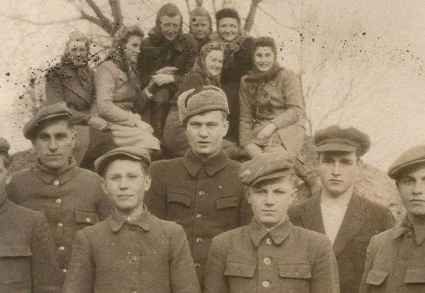 Mládež v Bludově na Volyni. Mezi děvčaty je první zprava Ludmila Stárková (Uhlířová). Mezi chlapci druhá řada první zleva bratr František Stárek.