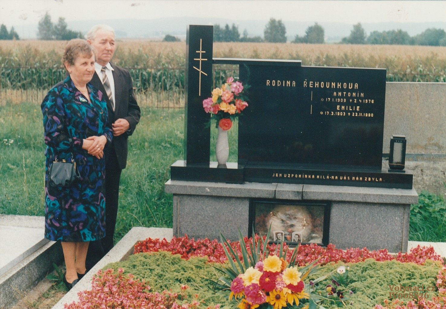 Manželé Pallovi u hrobu Řehounkových, rodičů Emilie Pallové