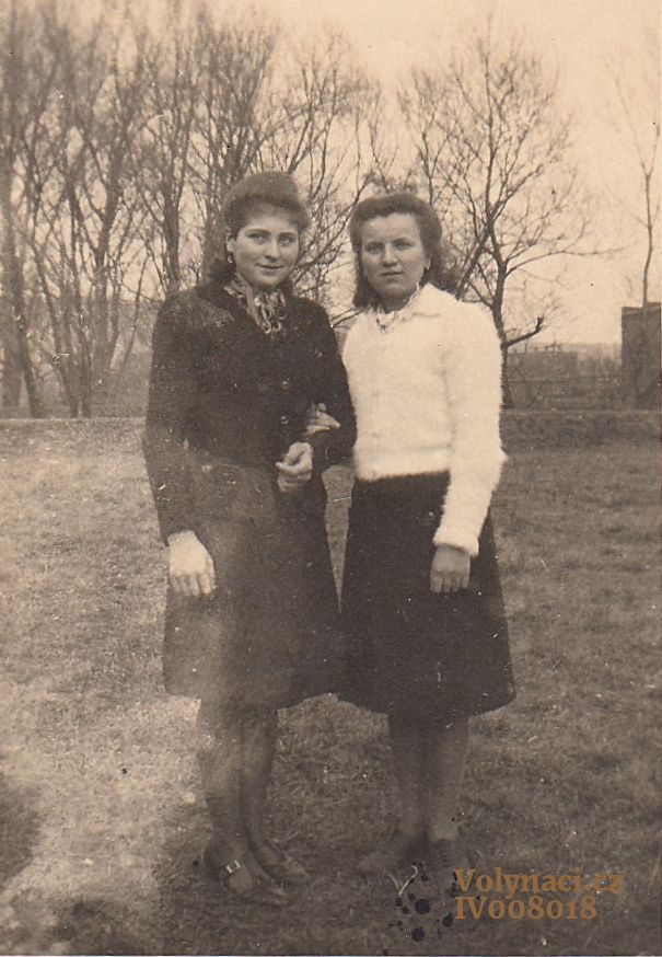 Antonie Vaníková s kamarádkou v pracovním táboře u Vídně, Rok: 1945, Zdroj: Archiv Antonie Švobové, roz. Vaníkové, Inventární číslo: IV008018