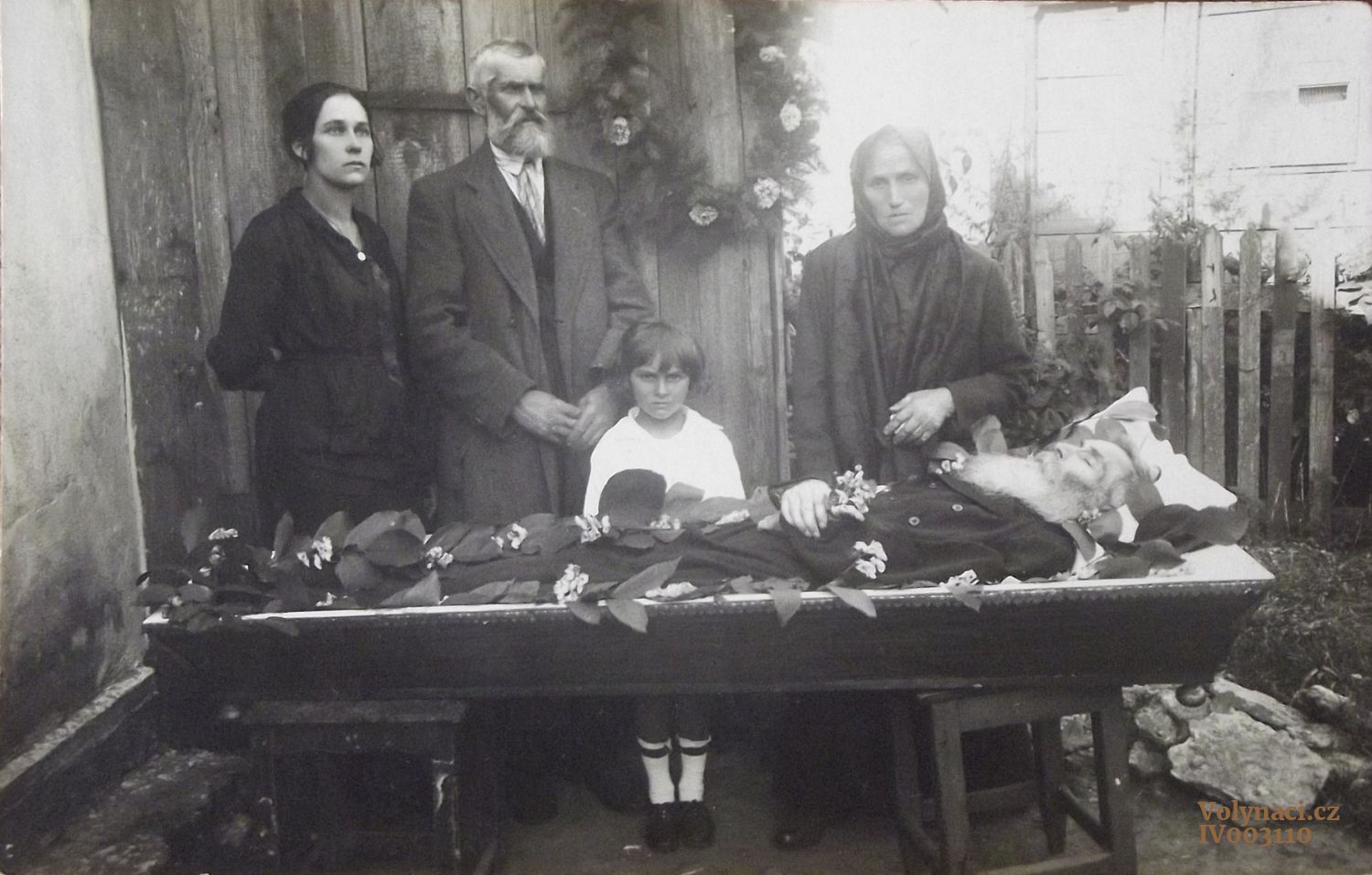 Rodina u rakve dědečka Josefa Vackeho, asi v roce 1927