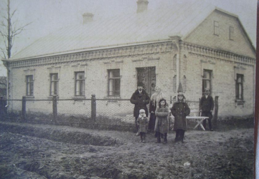 Dům rodiny Holcových - Josef Holec nejvyšší z dětí úplně vpravo (datum odhadem)